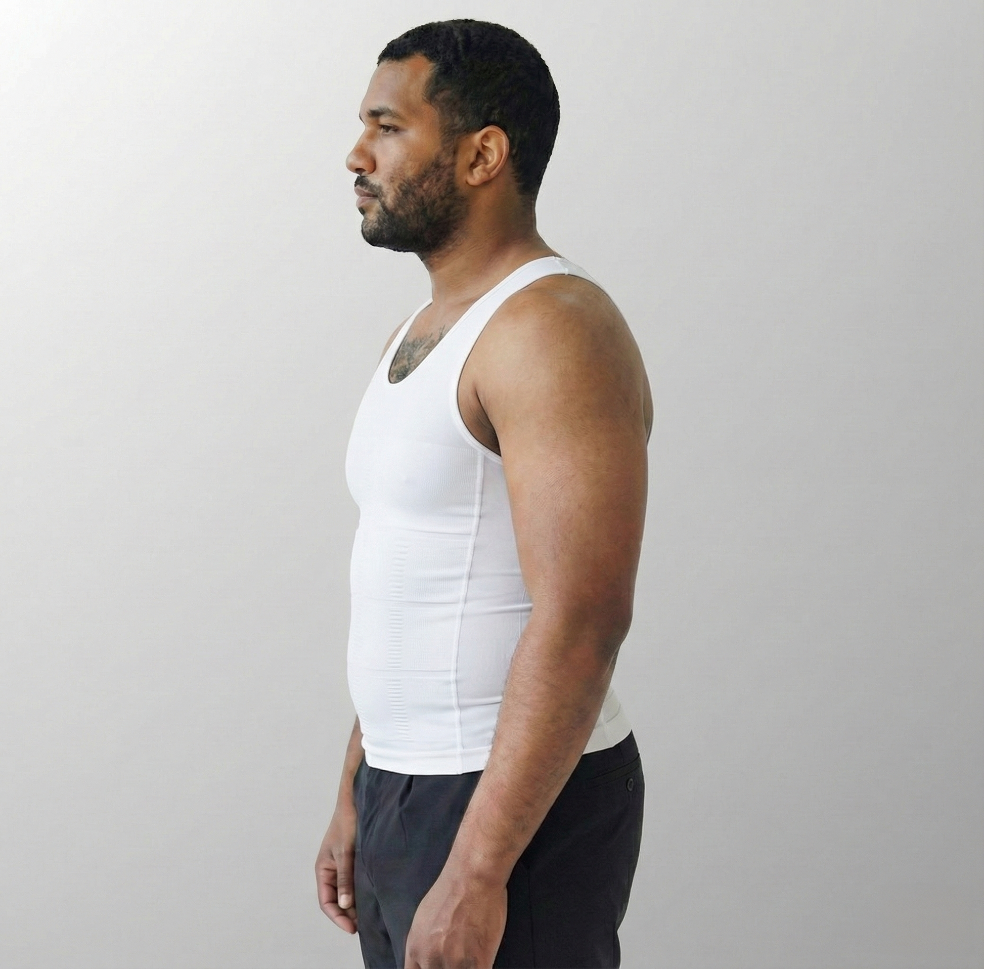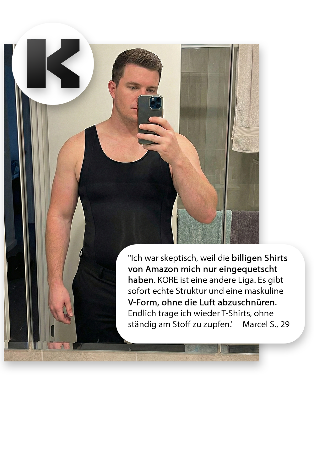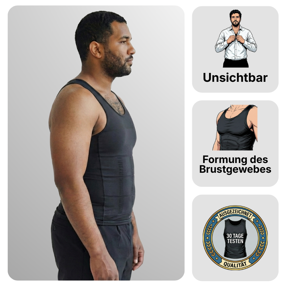 KORE-X Compression Matrix™: Die Kompressionszonen formen die Brust gezielt flach und korrigieren die Haltung, anstatt den Oberkörper wie herkömmliche Produkte nur unkontrolliert zu quetschen.
